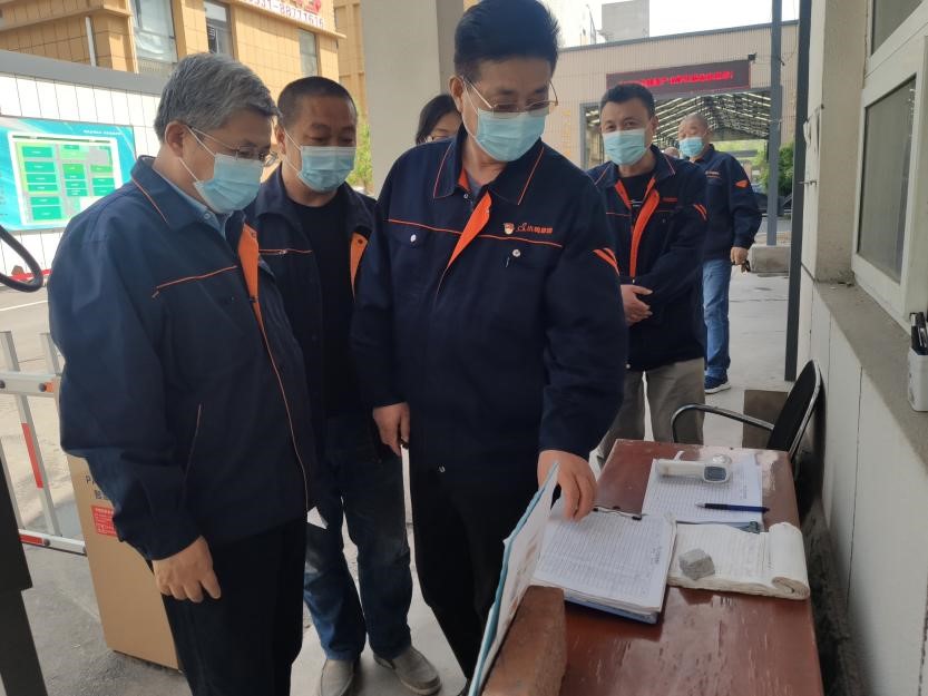督導(dǎo)檢查組檢查集團(tuán)園區(qū)大門(mén)疫情防控工作情況,叮囑工作人員守好疫情防控第一道防線。
